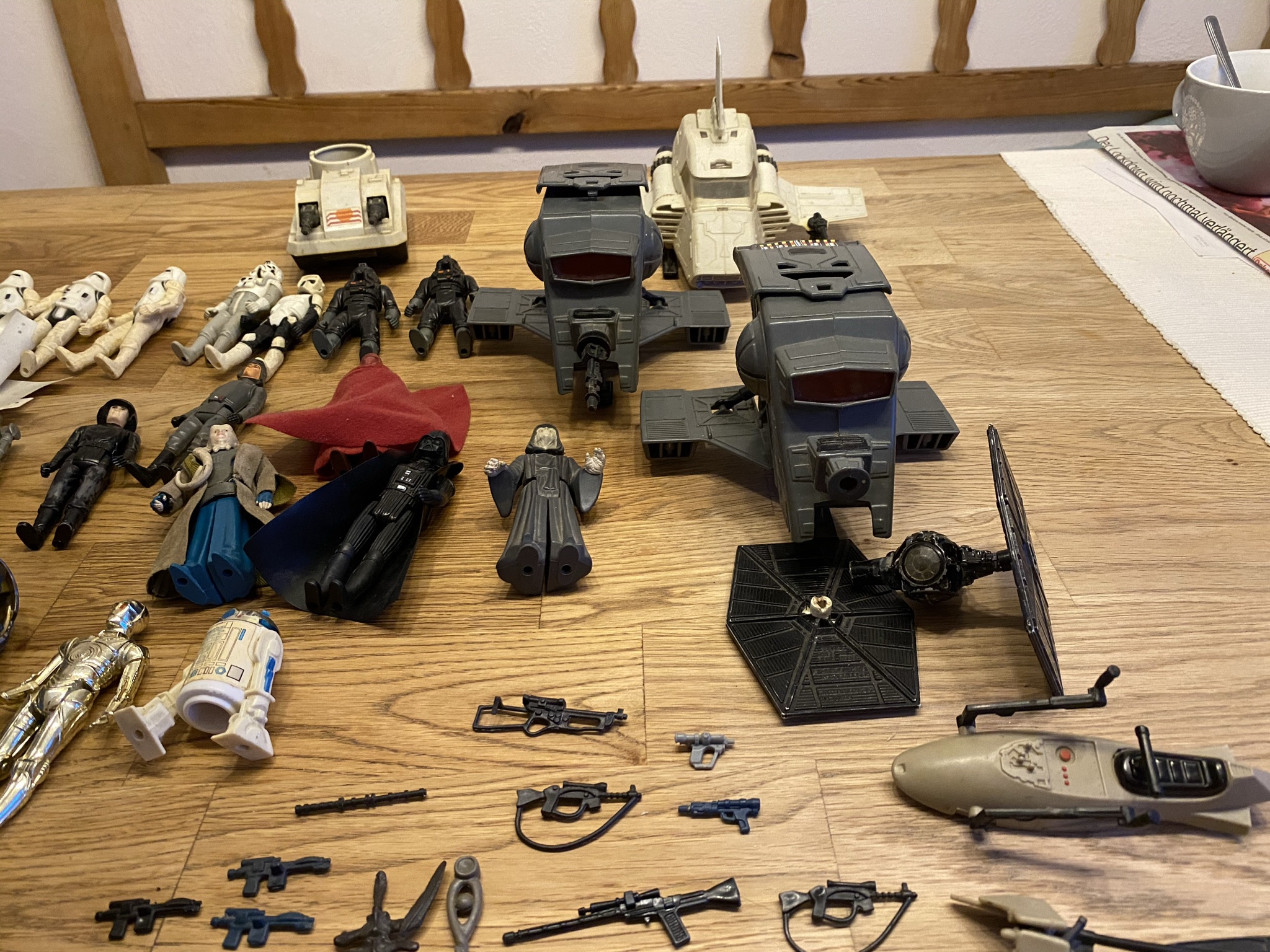 Eine Kiste mit alte, bespielte, teils defekten und bemalten Star Wars Figuren tauchte da auf.